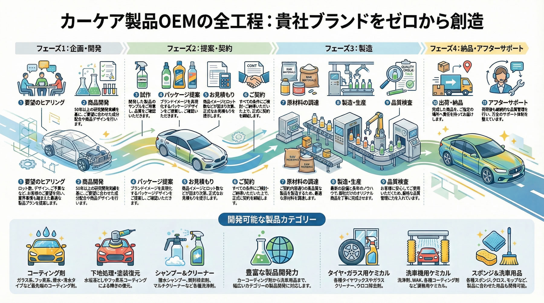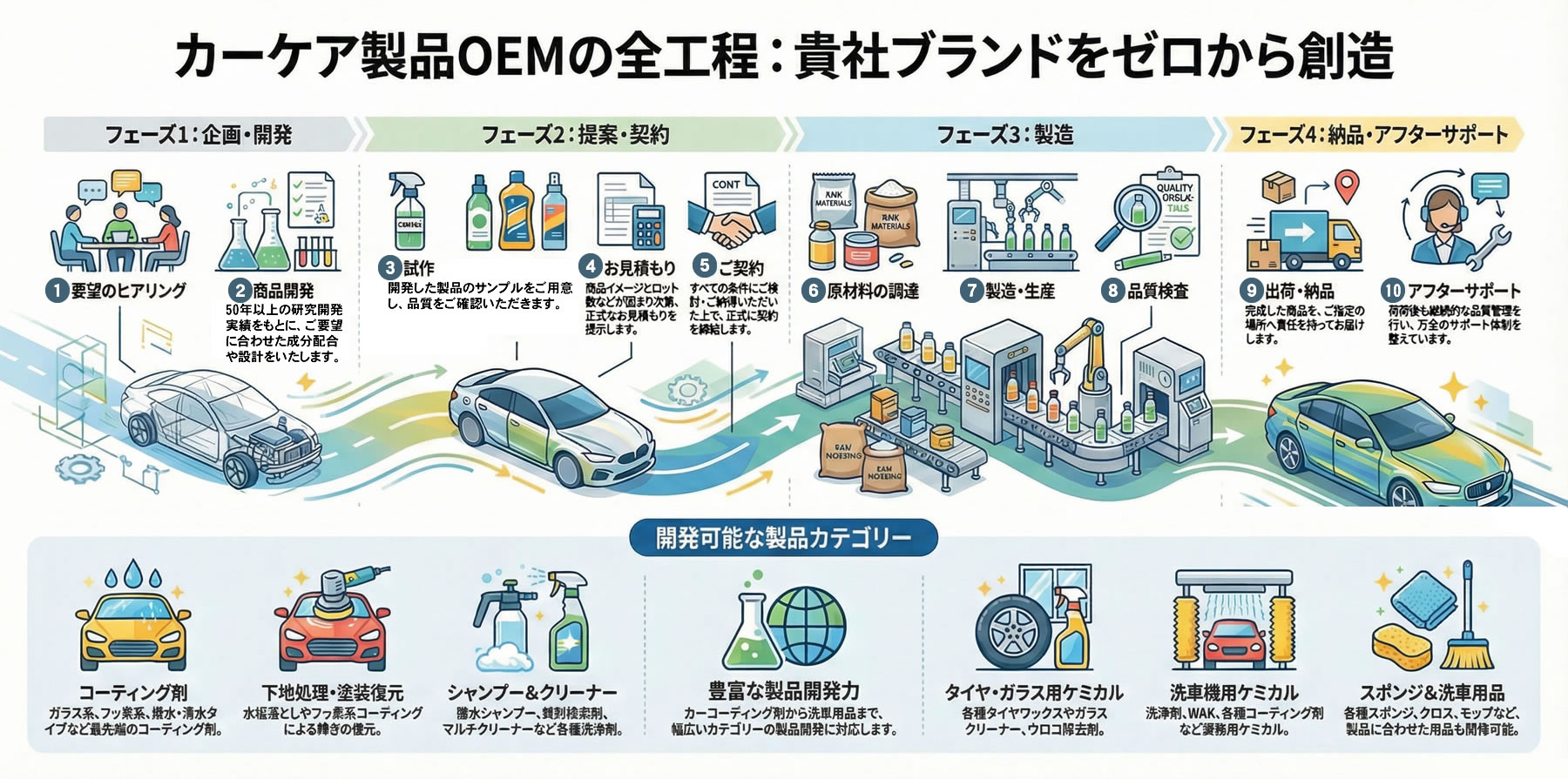 車用洗剤を専門に商品研究開発50年の実績をぜひご活用ください