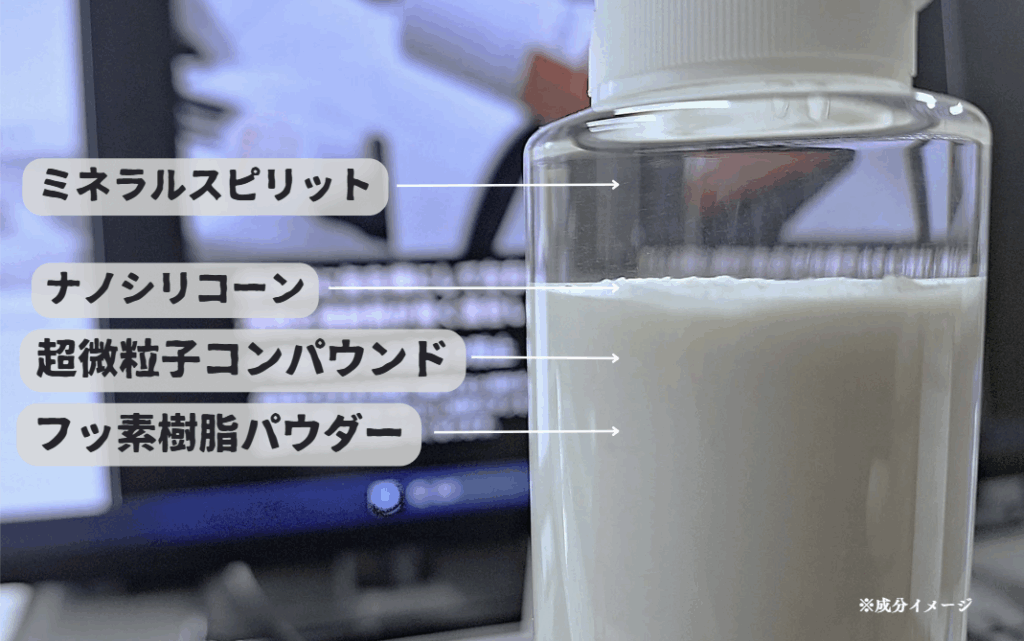 初缶を振らずに使い始めると、まずは上層にある溶剤や噴射剤が多く出てきてしまい、溶剤の成分が均一に混ざっていないため、仕上がりにばらつきやムラが出来やすくなります。