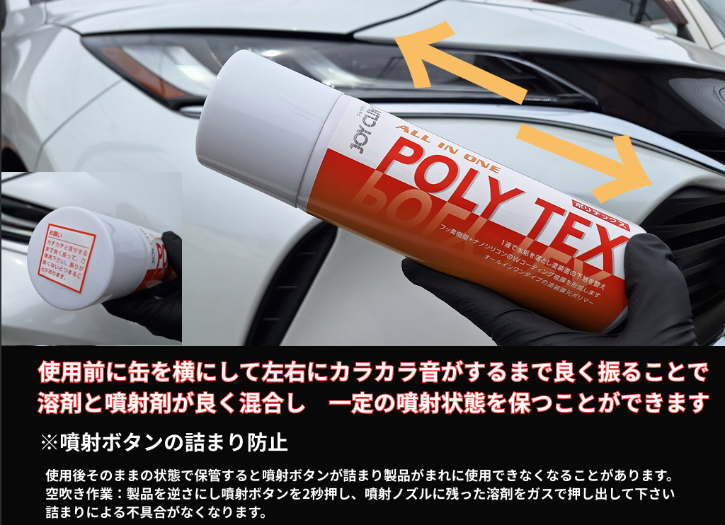 ポリテックスSP480ml缶を横向きにして 左右に強く数回、
