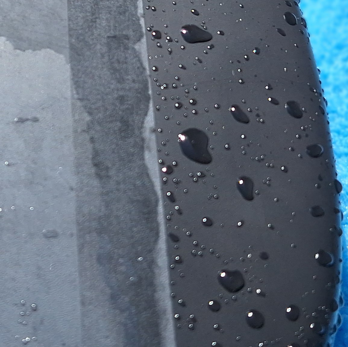 水滴の弾きと汚れの残りにくさが明確に違います。