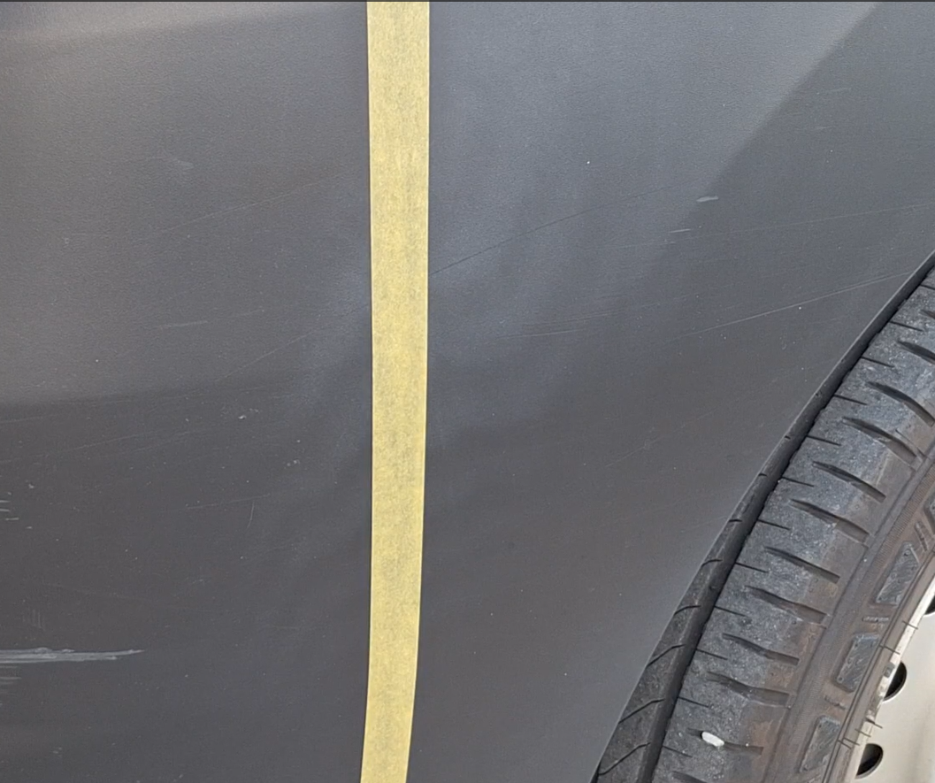 UltraDrop未塗装樹脂コーティングは伸びが良く、ムラになりにくいのが特徴ですが、このように境界線を作ることで、塗った瞬間から色の違いがはっきりと分かります。