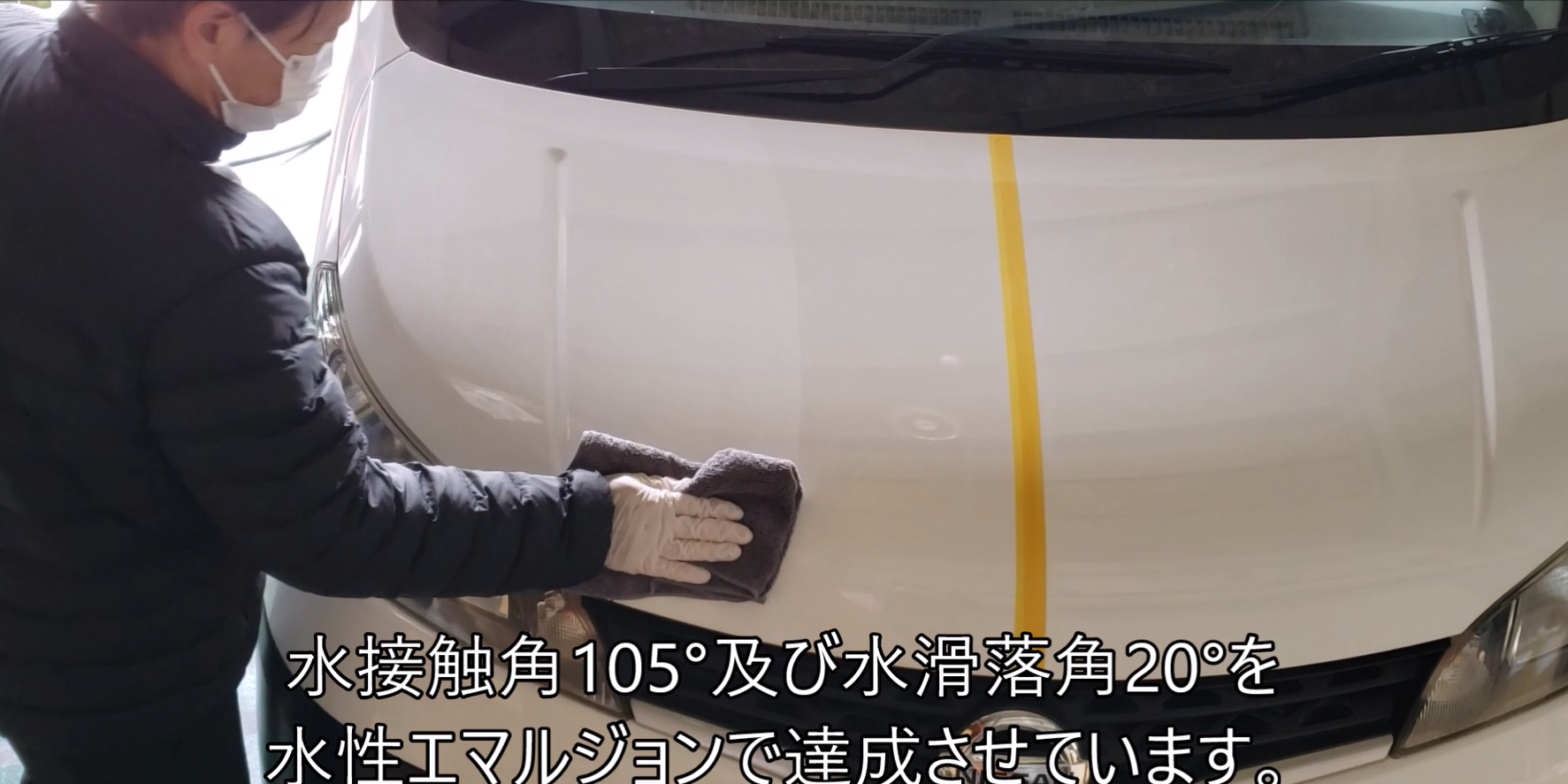 水性エマルジョンでありながら、水接触角105°、水滑落角20°という驚異的な数値を達成しています。これにより、ボディについた水滴がコロコロと転がり落ちる「超撥水」と「超滑水」を実現します。